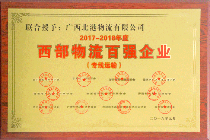北港物流坚持与西部陆海新通道共成长。2018年,获评“西部物流百强企业”;2019年、2020年,获评“广西物流企业50强”;2020年,获评“全国先进物流企业”;2021年,获评全国5A级物流企业、中国集装箱行业协会突出贡献集体。